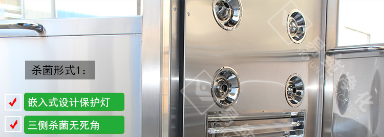 1、內(nèi)部安裝嵌入式紫外線殺菌燈,通過紫外波長為254微米的光波對室內(nèi)的微生物細(xì)菌進(jìn)行殺菌,從而抑制細(xì)菌的增長和繁衍。由于紫外線對人體有一定的傷害,故人員在室內(nèi)的時候不適合殺菌,一般我們是采用定時裝置,在無人員的情況下進(jìn)行殺菌。在控制系統(tǒng)里面安裝定時計時裝置,自動啟動殺菌系統(tǒng)。