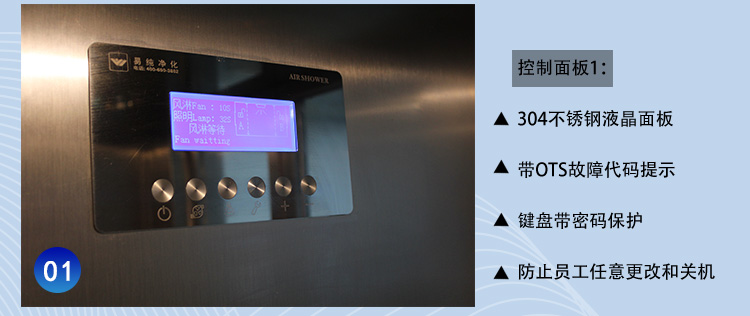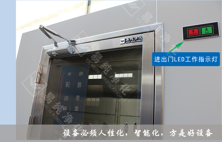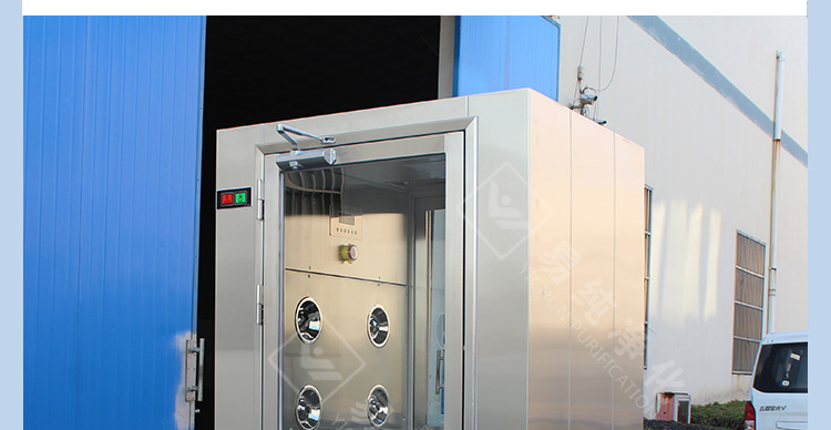 3、采用風(fēng)機(jī)高低檔轉(zhuǎn)速要求對內(nèi)部空氣進(jìn)行自動循環(huán)自凈。當(dāng)有人員進(jìn)入風(fēng)淋內(nèi)部時,風(fēng)淋風(fēng)機(jī)啟動,風(fēng)速一般達(dá)到25-28米/秒左右,當(dāng)人員出風(fēng)淋后,風(fēng)淋風(fēng)機(jī)低速運轉(zhuǎn),在設(shè)定時間到達(dá)后即停止。這樣的反復(fù)自凈,將內(nèi)部空氣不斷循環(huán)更新,以保證室內(nèi)空氣的新鮮及潔凈度。